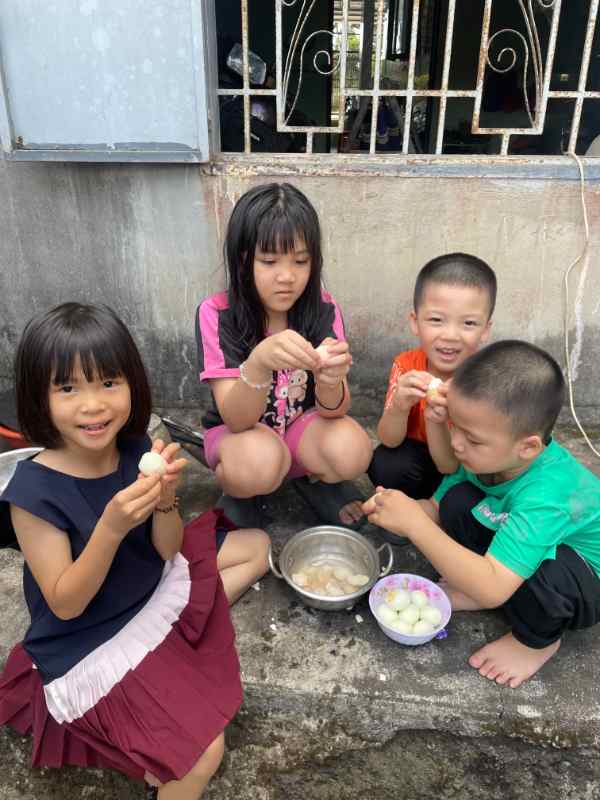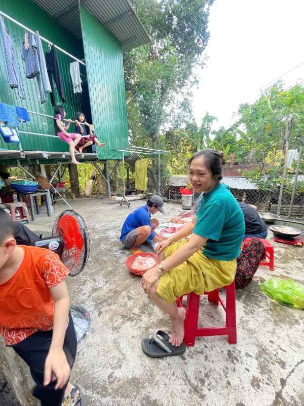 Đây là hoạt động mà cả nhà chờ đợi nhất. Mẹ ngâm nếp từ đêm hôm trước, sáng sớm cả nhà quây quần gói bánh — bà nội hướng dẫn từng bước gấp lá dong, cha cột dây lạt, mìn cũng gói thử nhưng đẹp quá nên ko được gói nữa , thậc kì cụt